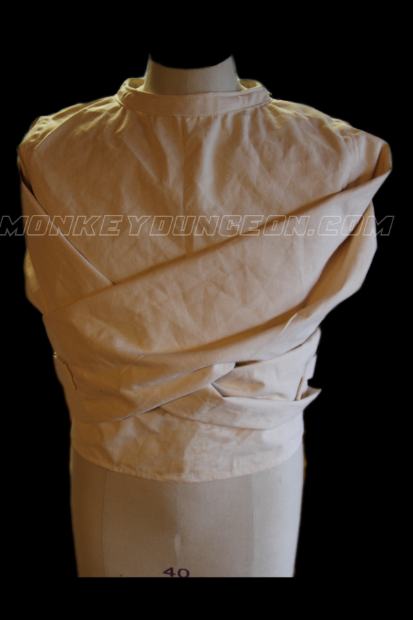 This is a replica of the style of jackets they used to use in the institutions in the early 1900s. Although it could be used for escape acts it's more designed for use in photography shoots, videos, and music videos, and anywhere that old institutional look is sought after. It's made with heavy duty leather straps that easily get marks and scratches on it which gives it that great old aged look. The more it gets roughed up , the better it looks. The leather straps and buckles are 1 1/2" wide.Comes in the standard 10 oz canvas or you can upgrade to the heavier 14oz. canvas for an even tougher jacket. it comes standard without a crotch strap. A crotch strap can be added in the options menu. The leather straps are completely removable on this jacket.